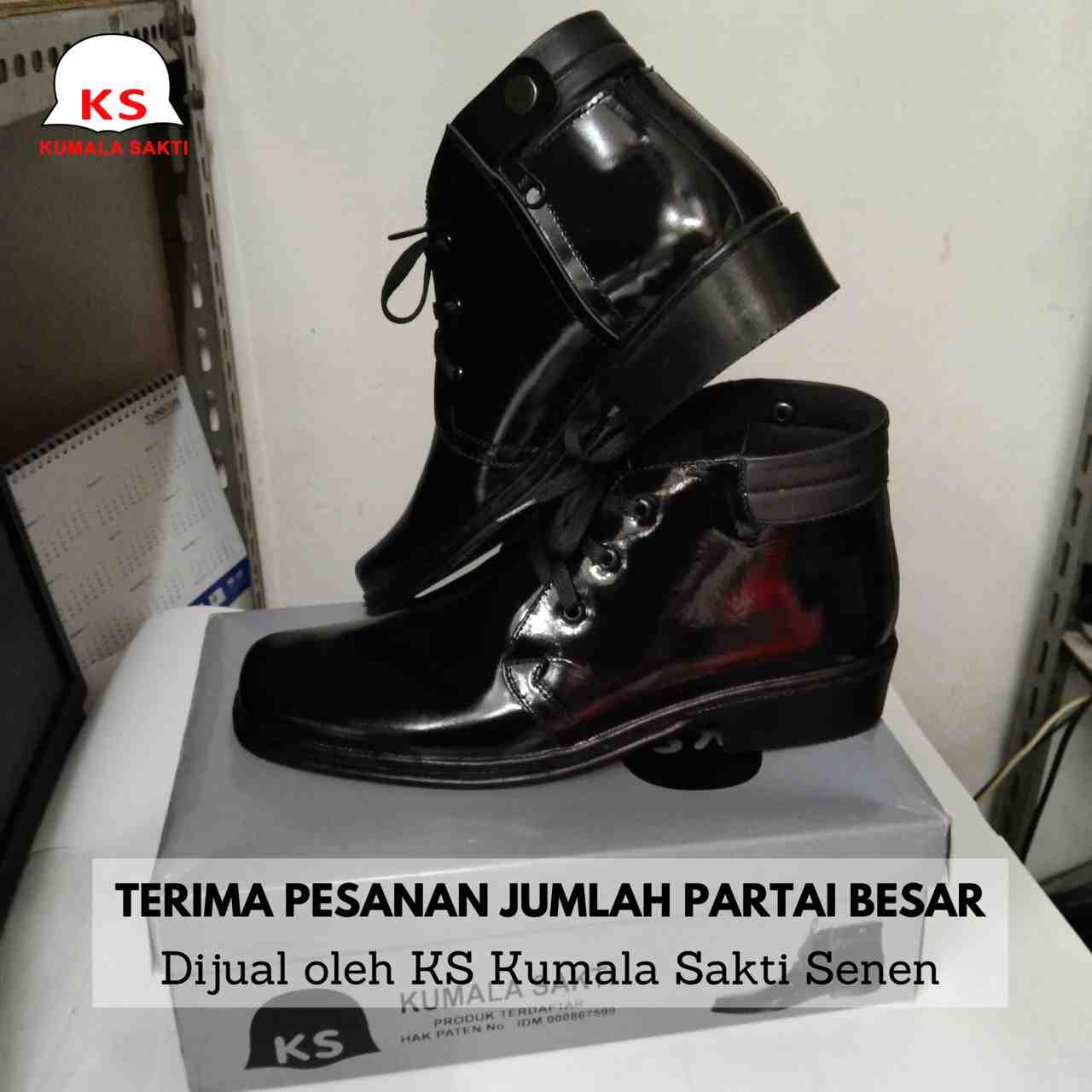Sepatu PDH Kulit Kilap Asli Resleting Tali KS 092